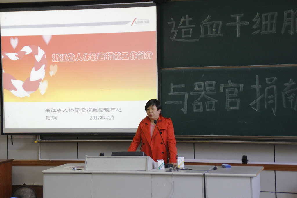 2017年4月12日下午,杭州师范大学红十字会学生分会在教学楼c楼102室举办“造血干细胞和人体器官捐献知识普及”讲座。本次活动面向所有在校大学生开展,目的旨在让同学们了解捐献造血干细胞捐献的相关知识,主要是采集方法及过程,以及"两捐"的意义,向同学们科普有关知识,呼吁更多的人加入到造血干细胞捐献和器官捐献志愿者的队伍中。