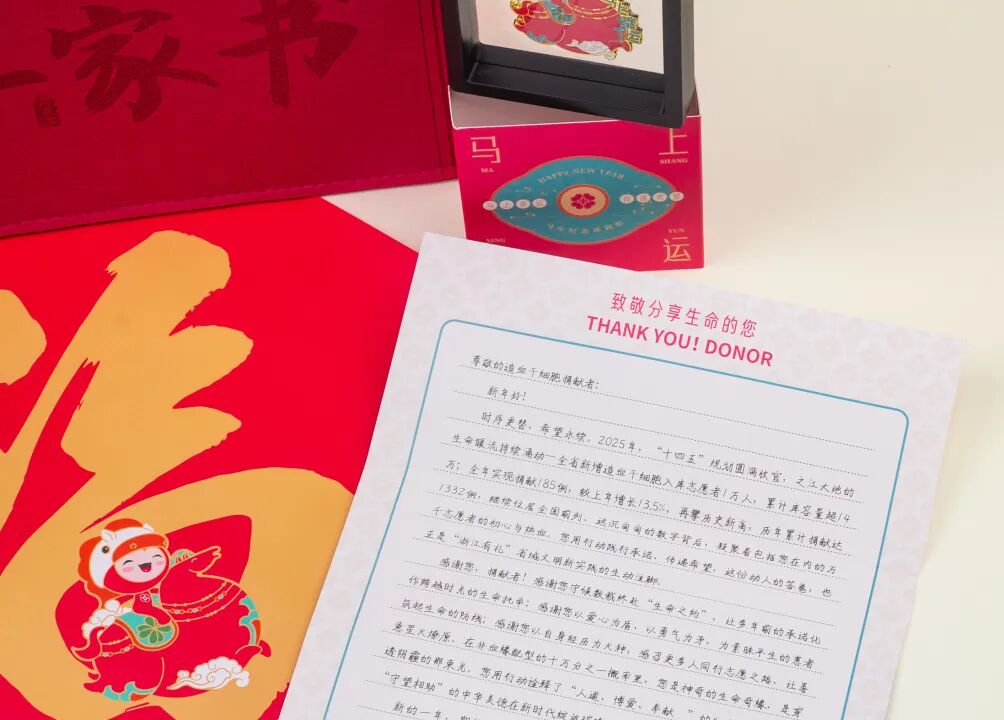 这是浙江省连续三年开展“为造血干细胞捐献者送上一份新年家书”活动。从2025年10月份开始设计、制作;2026年元旦正式邀请全省造血干细胞捐献者填写邮寄地址;1月底,全省1300多名捐献者如期收到了省红十字会精心准备的主题为“马上幸运”的新年家书。