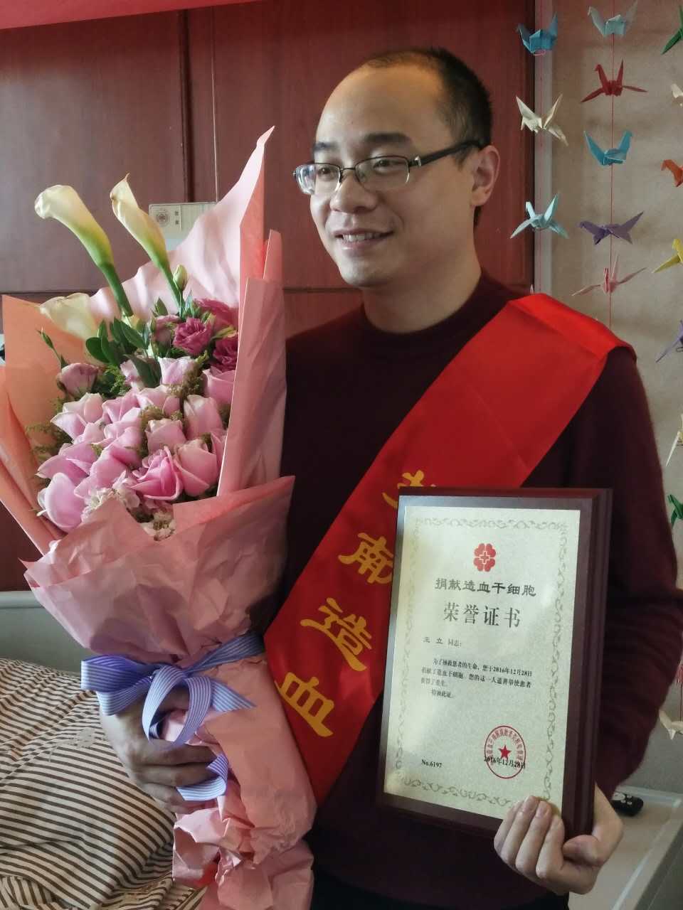 “能用自己的微薄之力去挽救一个生命,我感到无比荣幸,更为自己能成为造血干细胞捐献者感到自豪。在接下来的捐献中,我会积极配合,争取早日帮患者重获新生!”王立说。
